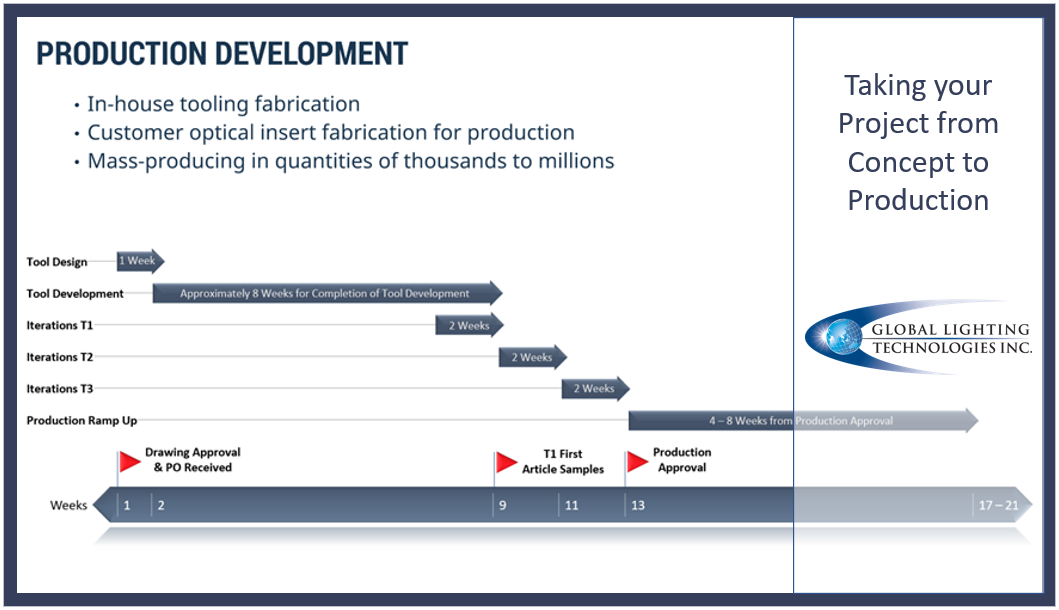 Step 1 Provide details on your project to the GLT team to initiate work including the following: Description of final product. Details regarding what will be illuminated. Target illumination specifications (Brightness & Uniformity) Schedule for product. GLT will review the project information to determine if it meets our project requirements and an engineer is assigned to work directly with...